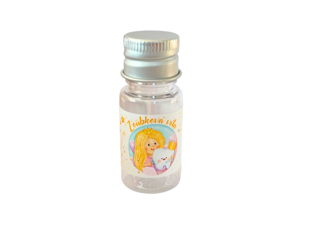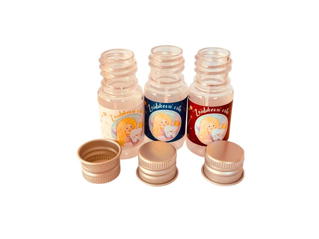 Bezpečnostní upozornění: Lahvička je vyrobena z plastu a může se při pádu rozbít – hrozí riziko pořezání. Obsahuje malé části (lahvička a víčko), které mohou být nebezpečné při spolknutí či vdechnutí. Uchovávejte mimo dosah dětí. Není určeno pro děti. Není hračka. Výrobek je určen pouze k dekorativním účelům, k uschování mléčných zoubků. Obal není hračka – nebezpečí udušení.