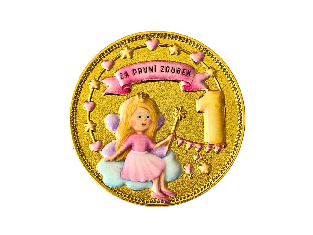 Bezpečnostní upozornění: Medaile Zoubkové víly jsou pamětní/dekorativní sběratelské předměty, nejsou určeny jako hračka. Nevhodné pro děti do 3 let - obsahují malé části. Nedávat do úst, nebezpečí spolknutí, vdechnutí, udušení. Plastová kapsle není hračka.